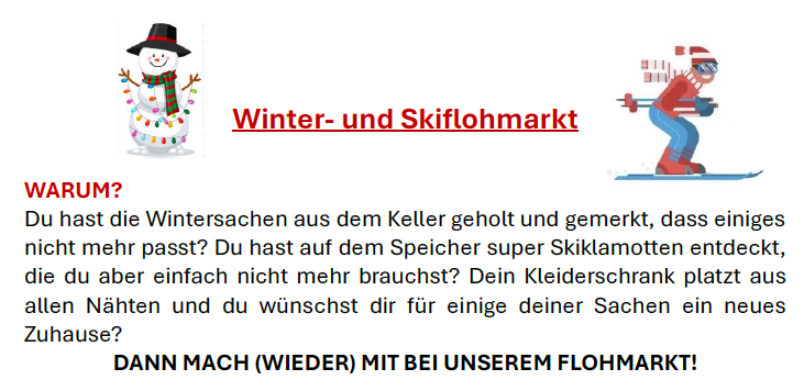 05.11.2025 – „Lieber tauschen statt neu kaufen“ – Die Nachhaltigkeits-AG veranstaltet erneut im Rahmen des Elternsprechtages am 19.11.2025 einen Winter- und Skiflohmarkt. Weitere Informationen zu Kleidungssstücken und Abgabezeiten