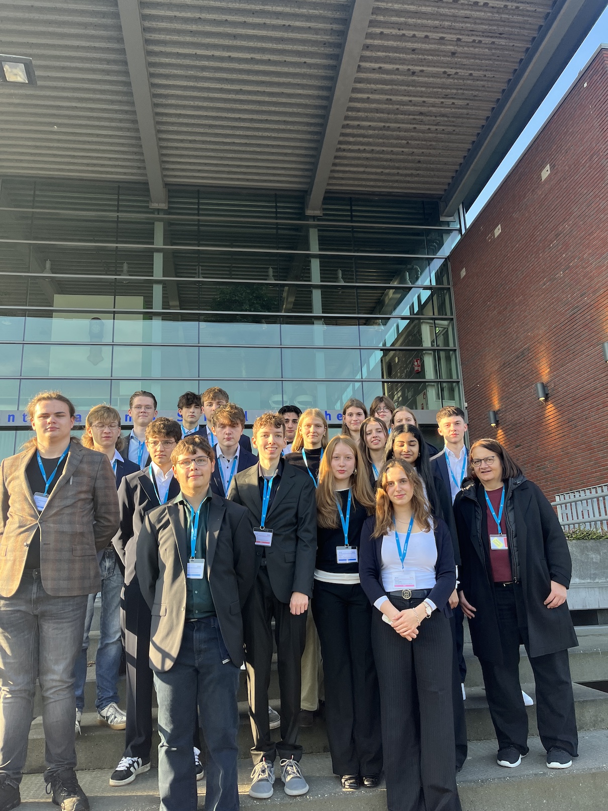 09.11.2025 – Vom 6. bis 9. November 2025 reisten 19 Schüler:innen des Projektkurses Englisch Q1 mit Frau Müller und Frau Rüschenbeck nach Den Haag, um an der Model UN der International School of The Hague (MUNISH) teilzunehmen – einer internationalen Schülerkonferenz nach dem Vorbild der Vereinten Nationen.