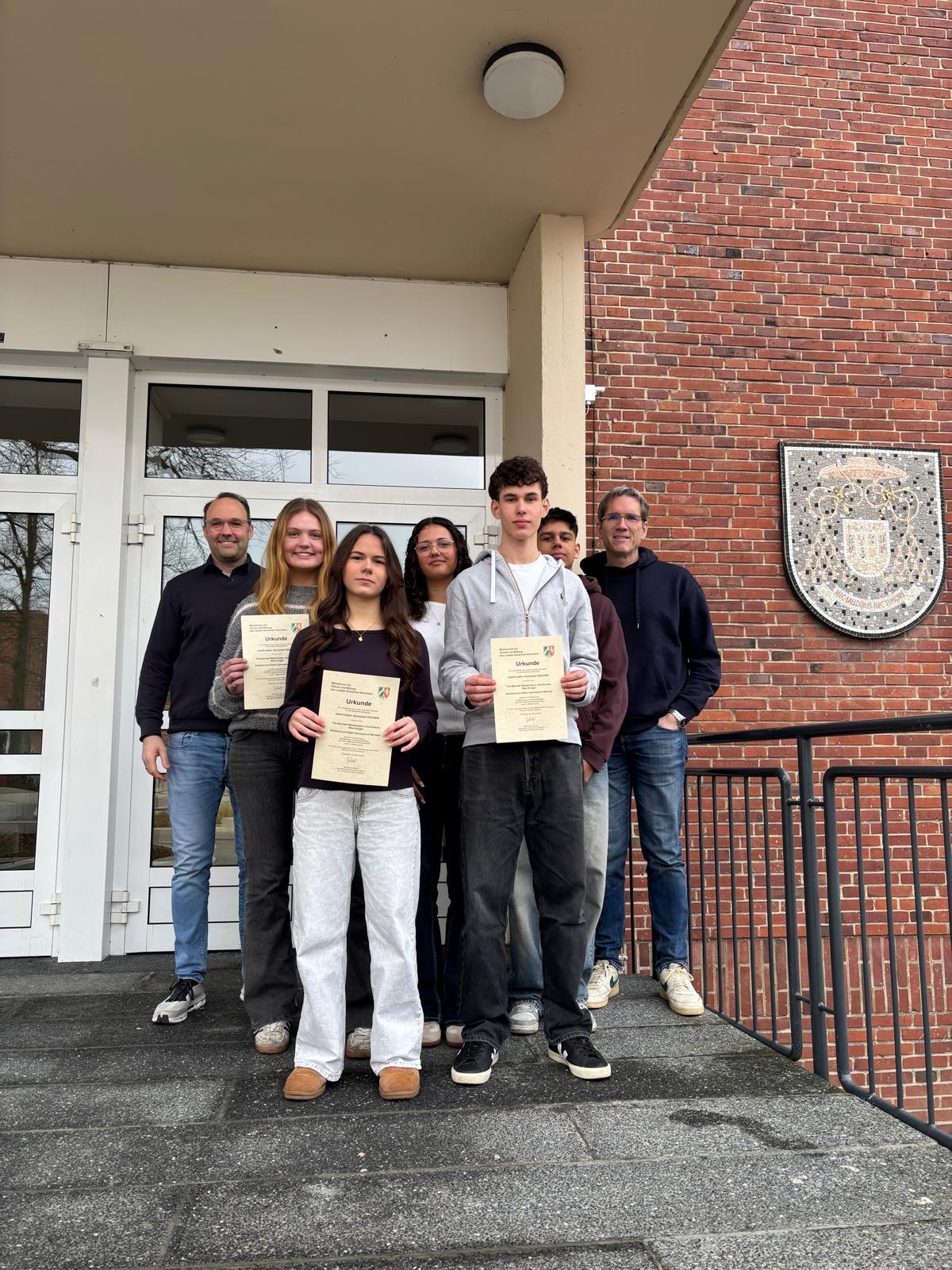 25.01.2026 – Für ihre Beiträge zum Bundeswettbewerb Philosophischer Essay wurden die beiden EF-Schülerinnen Lina Graute und Miriam Artarova ausgezeichnet. In ihren Essays hatten sie sich mit aktuellen Themen unter philosophischen Aspekten auseinandergesetzt.