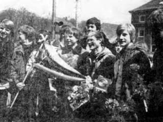 die Nachfolger eine rosa Nelke bereit. Auch zahlreiche Klassenkameraden wollten die Ankunft der Bundessieger miterleben. Mütter und Väter