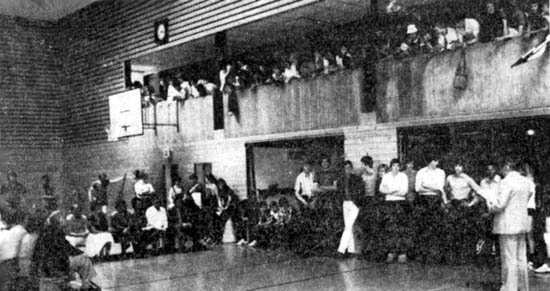 Dann gehörte die Sporthalle den KSJ-Leitern und den Lehrern. Die Wetten, die den ganzen Tag vor dem Spiel angenommen wurden, gingen zugunsten