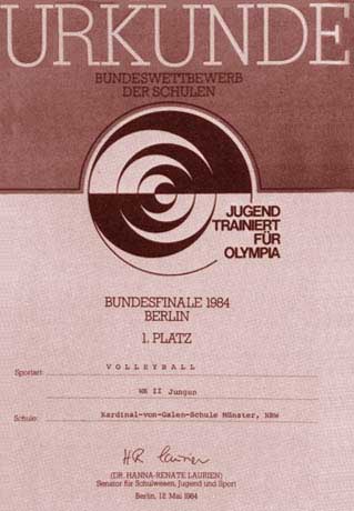 Klaus Brinkbäumer: Erfolge in Serie! oder: KvG-Volleyball in Sachen „Jugend trainiert“. In: Kardinal-von-Galen-Schule 1946-1986, Münster 1986