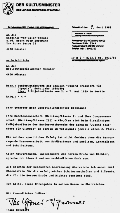 Spielplänen, vergilbten Zeitungsartikeln. Und einer Liste über die Volleyball-Triumphe des so erfolgsgewohnten Hiltruper Gymnasiums. Schon 17 mal,