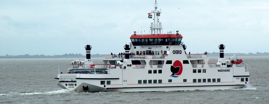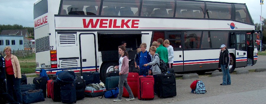 Mit der Fähre (siehe Bild) ging's dann um 12.30 Uhr von der Insel herüber zum Festland. Der Bulli mit Herrn Braunsmann setzte eine Stunde später über. Um 17.45 konnten die gespannt wartenden Eltern zunächst Herrn Braunsmann in Hiltrup begrüßen. Etwa 45 Minuten später erreichten dann endlich nach der üblichen Irrfahrt (wer bildet eigentlich die Busfahrer aus?) auch die beiden Busse den heimatlichen Schulhof und lieferten die Schüler wohlbehalten wieder ab.