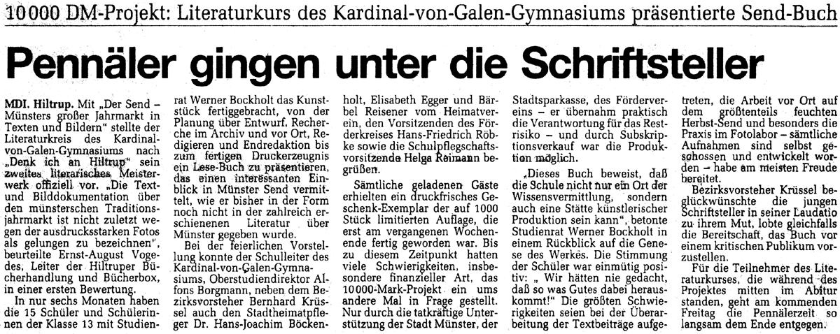 Daß jedoch der Send auch als Gegenstand eines Projekts im Literaturunterricht
