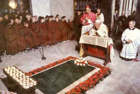 Papst Johannes Paul II. betet am Grab |