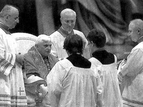 Bevor Papst Johannes Paul II die Seligsprechungen zu Beginn seiner Amtszeit kurzerhand selbst in die Hand genommen hatte, war es üblich, dass ein Kardinal diese durchführte und der Papst später am Tag der Seligsprechung zur Verehrung der Reliquien in den Petersdom kam. Diese Tradition hat nun Benedikt XVI. wieder aufgegriffen und lässt die Seligsprechungen selbst vom portugiesischen Kardinal Martins durchführen. Er ist Kardinal der Römischen Kurie, das bedeutet, dass er, wie alle anderen Kurienkardinäle auch, kein Bistum zu verwalten, sondern bestimmte Aufgaben im Vatikan zu erfüllen hat. Und eben dieser Kardinal Martins zog nun unter festlich intoniertem Orgelspiel und von vielen Konzelebranten begleitet ein. Nach Einleitungsworten des Kardinals und dem lateinischen Kyriegesang aus der „Missa de Angelis“ folgte der eigentliche Ritus der Seligsprechung.