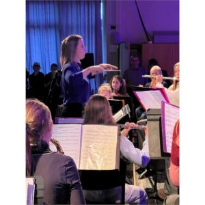 Ein erstes Konzert in leitender Rolle war es außerdem für Leonie Vehlken: Sie dirigierte die Bläserklasse 6 und das Nachwuchsorchester.