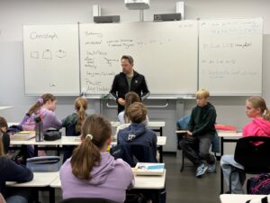 Dass der Wettbewerb von den Schüler:innen der 6. Klassen mit großer Spannung erwartet wurde, lag auch an einem zuvor durchgeführten Workshop, der viel Lust auf das Vorlesen machte: Am 14.11. war – wie schon in den letzten Jahren – Christoph Tiemann in allen vier Klassen zu Gast!