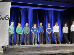 25.01.2026 – Ein Powerpoint-Vortrag beim Impro-Abend? „Gähn …“ Doch Stopp! Es war eine höchst amüsante Performance, die jetzt in der KvG-Aula präsentiert wurde. Die „Folien“ wurden nämlich als lebendige Standbilder inszeniert, welche von der Referentin elegant in ihren Vortrag zum Thema „Jugendsprache“ integriert wurden, ohne dass sie einen blassen Schimmer davon hatte, welche – von den Zuschauern vorgegebenen – Situationen sie denn nun vor Augen hatte. Perfekt, dieses wortreiche Überspielen von Ahnungslosigkeit – alle Zuschauer schienen sich sehr gut mit dieser Rolle identifizieren zu können. 😉