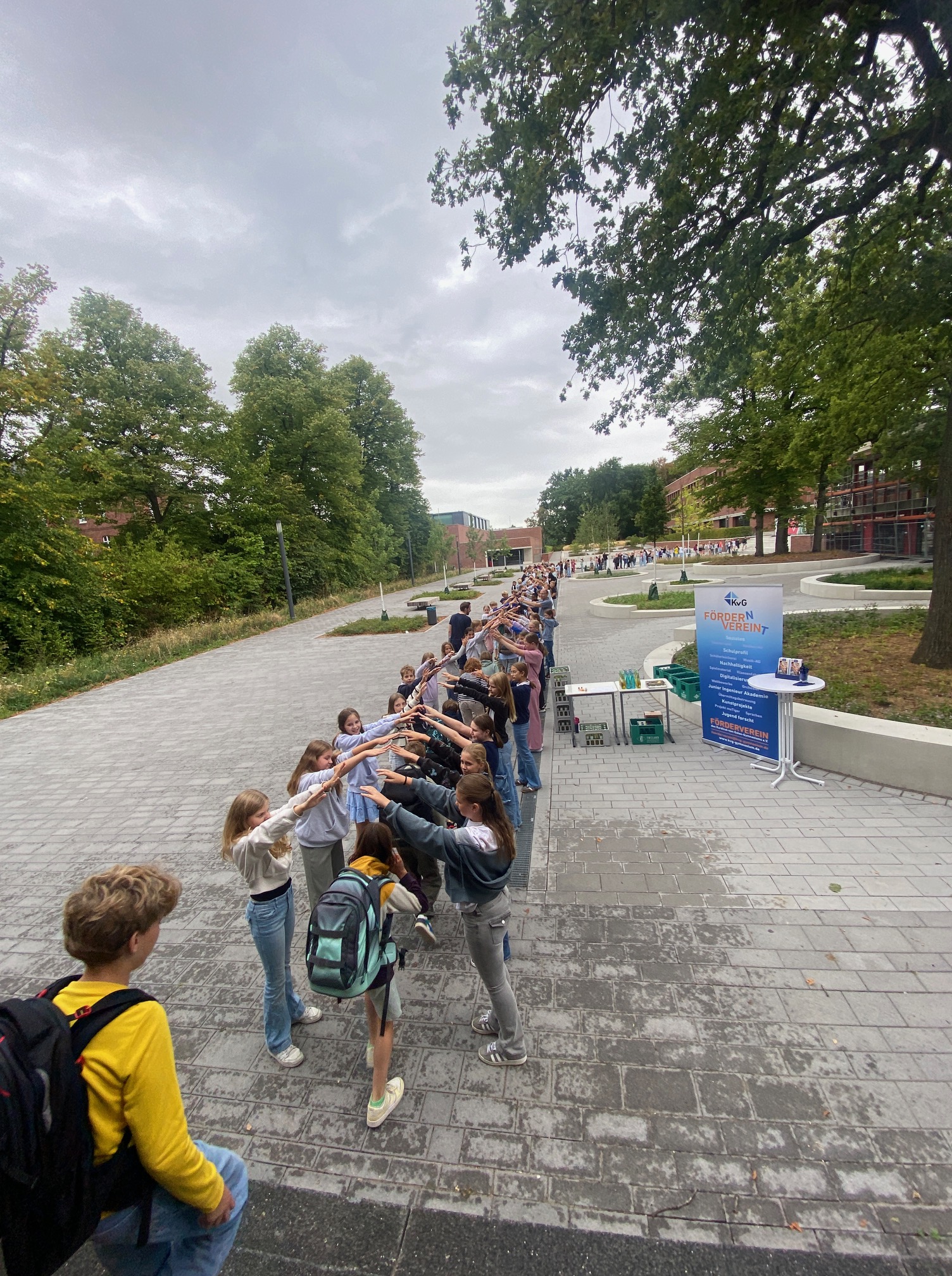 Im Anschluss machten sich die Kinder gemeinsam mit ihren Klassenleitungen und den Klassenpaten auf den Weg in die Klassenräume. Ein Highlight war dabei das traditionelle Spalier: Schüler:innen des 6. Jahrgangs begleiteten die „Neuen“ auf ihrem Weg vom Hauptgebäude zum Neubau – ein schönes Zeichen der Aufnahme in die Schulgemeinschaft. Wir freuen uns auf ein spannendes Schuljahr mit euch und wünschen euch einen guten Start am KvG!
