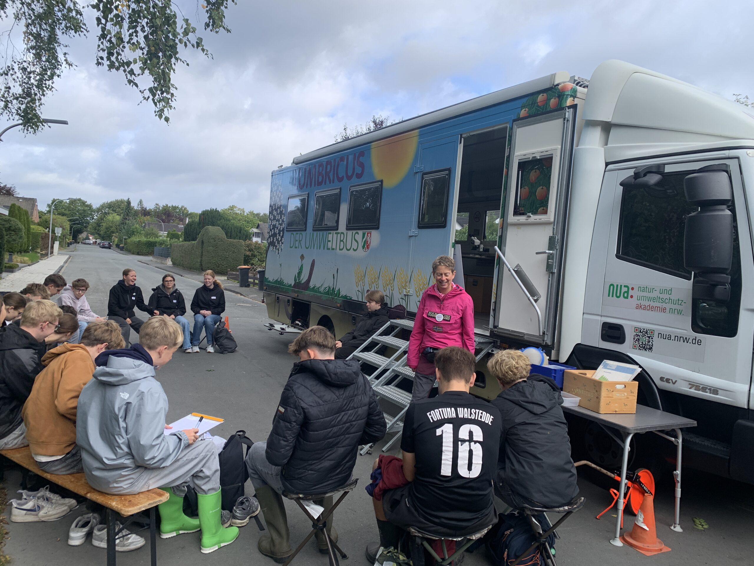 Unterwegs mit dem Lumbricus-Bus am Emmerbach in Hiltrup