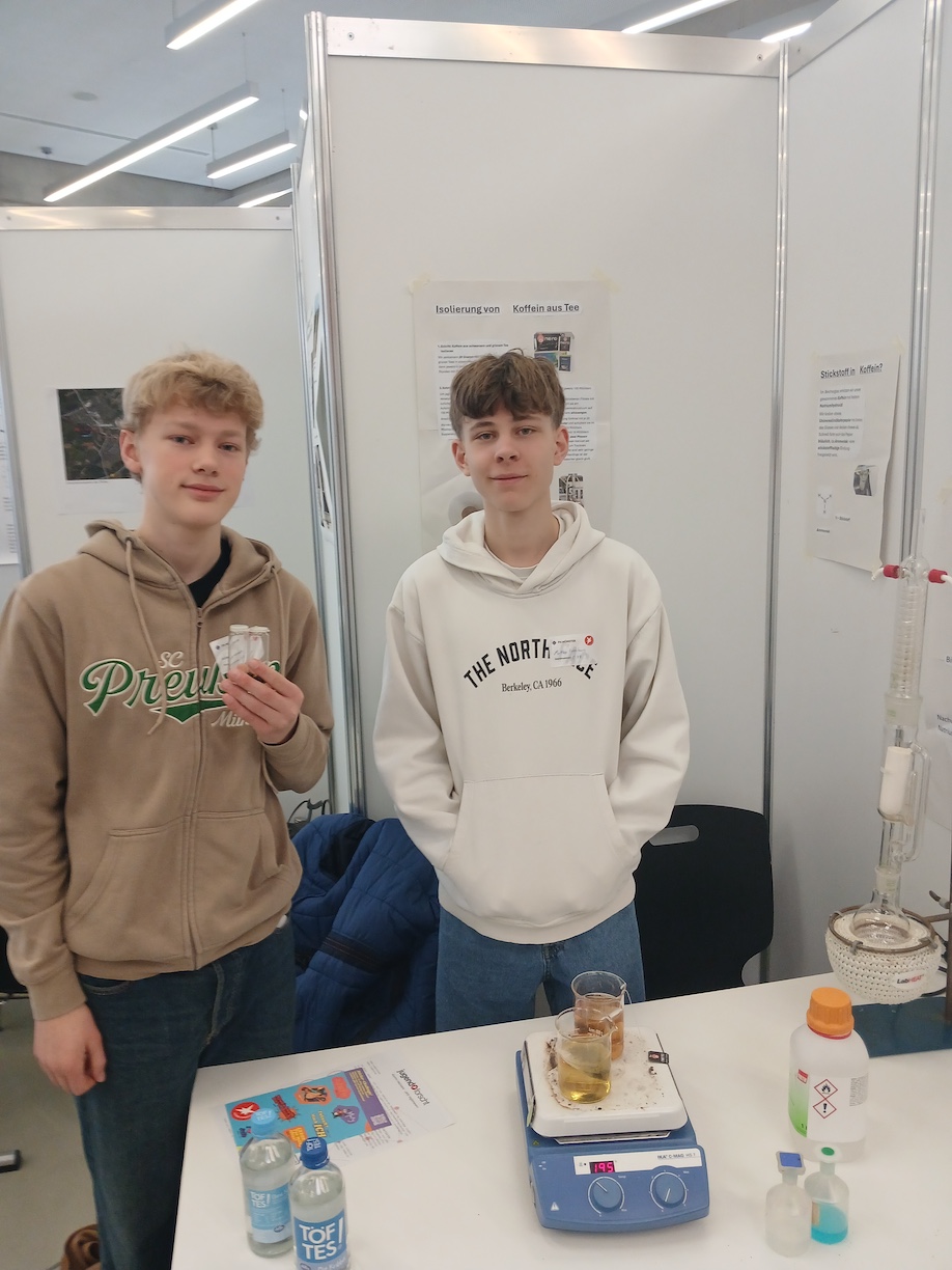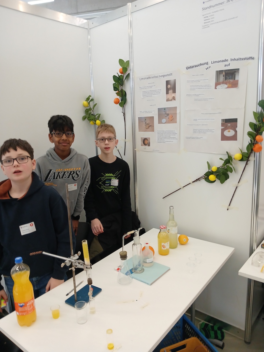 06.03.2026 – Auch in diesem Jahr hat unsere Schule sehr erfolgreich am Wettbewerb Jugend forscht teilgenommen. Von den sechs eingereichten Arbeiten waren fünf Projekte aus dem Fachgebiet Chemie und eine Arbeit aus dem Fachgebiet Technik. Alle Schülerinnen und Schüler haben ihre Arbeiten überzeugend präsentiert und die Jury überzeugt. Insgesamt haben 15 Schülerinnen und Schüler unserer Schule am Wettbewerb Jugend forscht teilgenommen. Besonders erfolgreich waren Emilia Nawrath, Anni Dömer und Esther Uepping aus der Klasse 7b, die mit ihrer Arbeit „Farben natürlich und chemisch herstellen“ die Jury in besonderer Weise überzeugt haben und einem 2. Platz im Fachgebiet Chemie in der Sparte Jugend forscht Junior (Schüler experimentieren) gewonnen haben. Sehr erfolgreich war auch Mika Köching aus der Klasse 10d, der im Fachgebiet Technik eine Arbeit verfasst hat  „Die wiederverwendbare Radiosonde“.  Mika hat den 3. Platz und den Sonderpreis für Umwelttechnik in der Sparte Jugend forscht gewonnen.